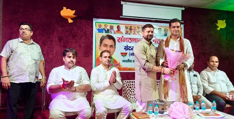 GREATER NOIDA News (02/09/2025): भारतीय जनता पार्टी, ग्रेटर नोएडा मंडल (BJP, Greater Noida Mandal) की संगठनात्मक बैठक आज मंगलवार को मंडल अध्यक्ष अर्पित तिवारी की अध्यक्षता में सम्पन्न हुई। बैठक में मुख्य अतिथि के रूप में जिला अध्यक्ष अभिषेक शर्मा उपस्थित रहे। उनके साथ जिला उपाध्यक्ष सत्येंद्र नागर, जिला महामंत्री धर्मेंद्र कोरी, पूर्व मंडल अध्यक्ष सतीश गुलिया एवं महेश शर्मा सहित अनेक वरिष्ठ पदाधिकारी भी उपस्थित रहे और उन्होंने अपने मार्गदर्शन से कार्यकर्ताओं का उत्साहवर्धन किया।