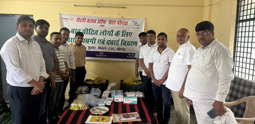 उसी क्रम में गौतमबुद्ध नगर में भी हजारों लोग अपने घर से बेघर हो गए हैं जिनको प्रशासन द्वारा सेक्टर 135,159 व अन्य कई जगह रखा गया है। रोटरी क्लब के सदस्यों ने वहाँ जाकर उनको केले, बिस्किट, खाना और दवाई वितरित की।