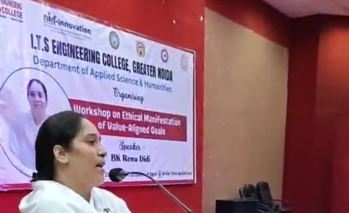 आई.टी.एस. इंजीनियरिंग कॉलेज, ग्रेटर नोएडा के एप्लाइड साइंस एवं ह्यूमैनिटीज विभाग द्वारा “एथिकल मैनिफेस्टेशन फॉर वैल्यू अलाइंड गोल्स” विषय पर एक दिवसीय कार्यशाला का आयोजन किया गया। इस कार्यशाला में ब्रह्माकुमारी संस्थान की बहनों – बी.के. रेनू दीदी, बी.के. संध्या दीदी, बी.के. नेहा दीदी एवं बी.के. हीना दीदी ने विद्यार्थियों को संबोधित किया।