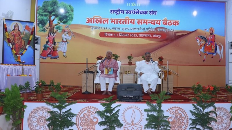 Jodhpur News (05 September 2025): राष्ट्रीय स्वयंसेवक संघ एवं संघ प्रेरित संगठनों की अखिल भारतीय पदाधिकारियों की तीन दिवसीय समन्वय बैठक (5–7 सितम्बर) का शुभारंभ आज जोधपुर में हुआ। सरसंघचालक डॉ. मोहन भागवत और सरकार्यवाह दत्तात्रेय होसबाले ने भारत माता के चित्र के समक्ष पुष्पार्चन कर प्रथम सत्र का उद्घाटन किया।