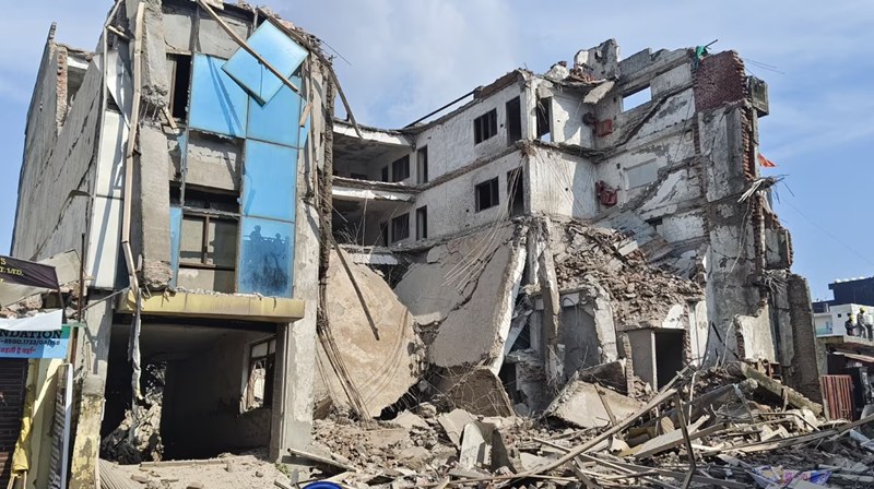 New Delhi News (07/09/2025): दिल्ली के बदरपुर इलाके में रविवार दोपहर बड़ा हादसा हुआ, जब एक चार मंजिला इमारत अचानक गिर गई। राहत की बात यह रही कि हादसे के समय इमारत पूरी तरह खाली थी, जिससे किसी प्रकार की जनहानि नहीं हुई। प्रशासन और दमकल विभाग की टीम तुरंत मौके पर पहुंची और हालात को नियंत्रण में लिया। वर्तमान में मलबा हटाने का काम जारी है।