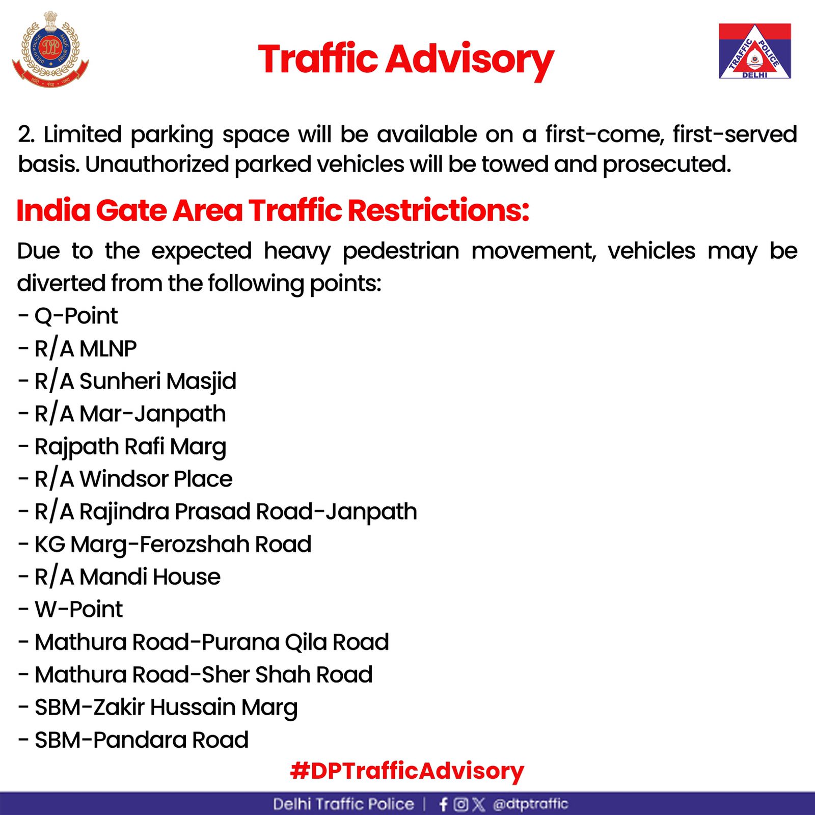 कनॉट प्लेस और इंडिया गेट जैसे लोकप्रिय क्षेत्रों में सुरक्षा के खास इंतजाम किए गए हैं। इन इलाकों में भीड़ को नियंत्रित करने और यातायात को सुचारू रखने के लिए पुलिस ने एडवाइजरी जारी की है। मंगलवार रात 8 बजे से नए साल के जश्न के अंत तक कुछ पाबंदियां लागू रहेंगी।
