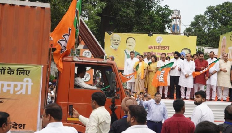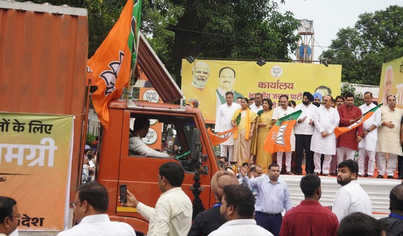 नई दिल्ली, (08 सितंबर 2025): दिल्ली की मुख्यमंत्री रेखा गुप्ता और प्रदेश भाजपा अध्यक्ष वीरेन्द्र सचदेवा ने रविवार को दिल्ली भाजपा कार्यालय से पंजाब के बाढ़ प्रभावितों के लिए राहत सामग्री से भरे 52 ट्रकों को हरी झंडी दिखाकर रवाना किया। इस मौके पर प्रदेश सह प्रभारी डॉ. अलका गुर्जर, संगठन महामंत्री पवन राणा, प्रदेश महामंत्री विष्णु मित्तल, दिल्ली सरकार के मंत्री सरदार मनजिंदर सिंह सिरसा, प्रवेश साहिब सिंह, आशीष सूद, कपिल मिश्रा, डॉ. पंकज सिंह, प्रदेश कोषाध्यक्ष सतीश गर्ग, उपाध्यक्ष योगिता सिंह, राजकुमार भाटिया सहित अनेक पदाधिकारी मौजूद रहे।