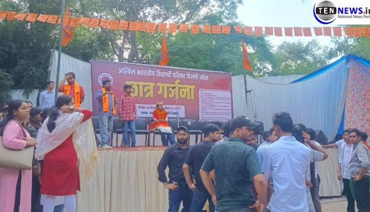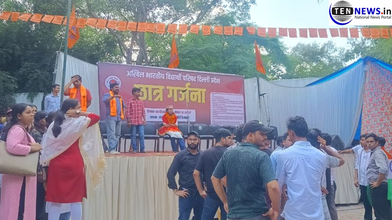 New Delhi News (09 सितम्बर 2025): दिल्ली विश्वविद्यालय छात्र संघ (DUSU) चुनाव से पहले नॉर्थ कैंपस में मंगलवार को अखिल भारतीय विद्यार्थी परिषद (ABVP) ने छात्र गर्जना रैली का आयोजन किया। आर्ट फैकल्टी के पास हुए इस कार्यक्रम में संगठन के कई शीर्ष नेता और संभावित उम्मीदवार मंच पर मौजूद रहे। रैली जहां एक ओर परोक्ष रूप से चुनावी प्रचार का मंच बनी, वहीं दूसरी ओर छात्र हितों से जुड़ी कई अहम मांगों को जोरदार तरीके से उठाया गया।