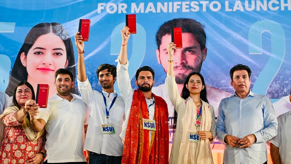 नेशनल स्टूडेंट्स यूनियन ऑफ इंडिया (NSUI) ने अपने घोषणापत्र में सभी छात्रों को समान इंफ्रास्ट्रक्चर, सस्ती शिक्षा और अधिकारों की गारंटी देने का आश्वासन दिया। NSUI ने दिव्यांग छात्रों को 5,000 रुपये का मासिक भत्ता देने का वादा किया है। संगठन ने राष्ट्रीय शिक्षा नीति (NEP) को खारिज करने का मुद्दा भी उठाया। पूर्वोत्तर और भाषाई अल्पसंख्यक छात्रों के लिए विशेष सहायता प्रणाली की घोषणा की गई है। वहीं, महिला छात्रों के लिए अलग घोषणापत्र जारी कर सुरक्षा और स्वास्थ्य पर जोर दिया गया है। इसमें गर्ल्स हेल्पलाइन, सेनेटरी पैड वेंडिंग मशीनें और पीरियड्स हेल्थ अवेयरनेस कैंपेन शुरू करने का वादा किया गया है।
