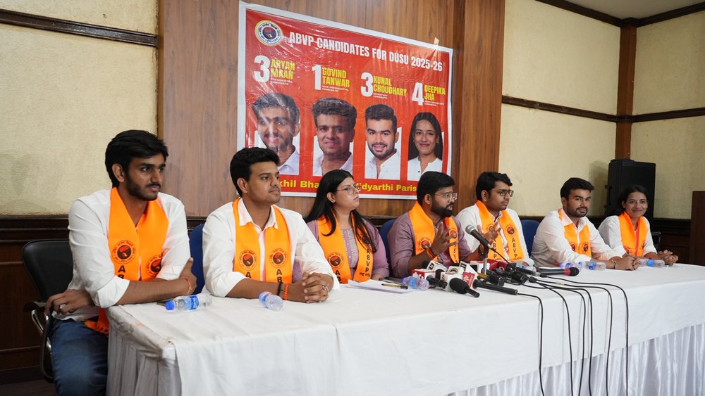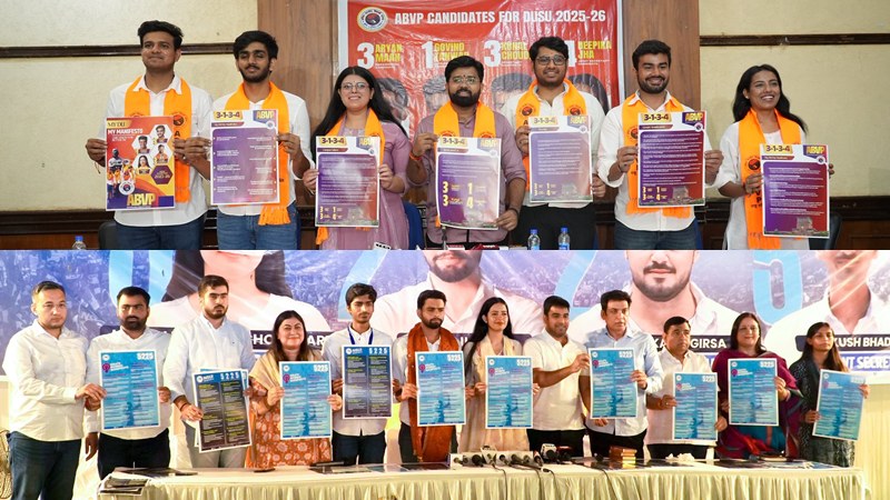 अखिल भारतीय विद्यार्थी परिषद (ABVP) ने दावा किया कि उसने घोषणापत्र तैयार करने से पहले 5,000 से ज्यादा छात्रों से सुझाव लिए। संगठन ने शिक्षा, सुरक्षा, स्वास्थ्य, खेल और रोजगार को प्राथमिकता में रखा है। ABVP ने छात्रों को सस्ती दरों पर मेट्रो पास उपलब्ध कराने और कैंपस में मुफ्त वाई-फाई की सुविधा देने का वादा किया है। इसके साथ ही स्वास्थ्य बीमा योजना शुरू करने और दिव्यांग छात्रों के लिए विशेष कदम उठाने की घोषणा की है।