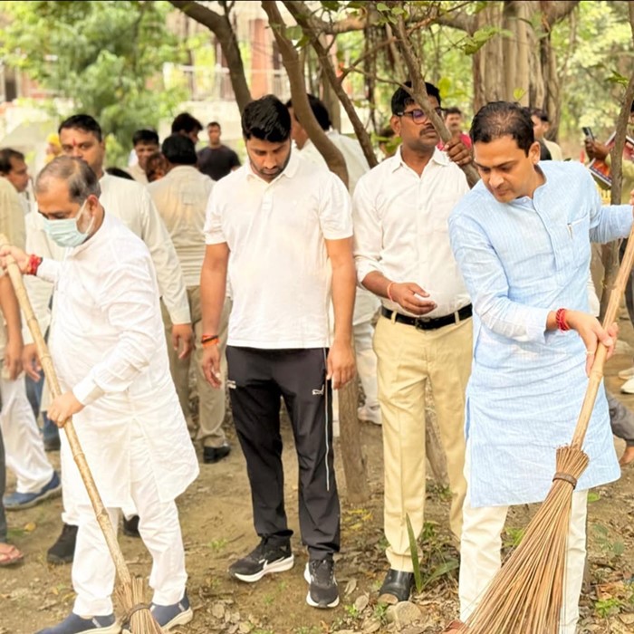 Greater Noida News (17/09/2025): आज सेवा ही संकल्प, राष्ट्र प्रथम ही प्रेरणा सेवा पखवाड़ा (17 सितंबर से 2 अक्टूबर 2025) के अंतर्गत प्रधानमंत्री नरेन्द्र मोदी (PM Modi) के जन्म दिवस (Birth Day) पर ग्रेटर नोएडा परी चौक स्थित झांडे वाले बाबा मंदिर में प्रभारी मंत्री कुंवर बृजेश सिंह के साथ जिला अध्यक्ष अभिषेक शर्मा व भारतीय जनता पार्टी के कार्यकर्ता ने स्वछता अभियान चलाया। साथ ही भाजपा जिला कार्यालय पर ब्लड डोनेट शिविर का शुभारंभ किया और दादरी जन स्वास्थ्य शिविर का भी शुभारंभ आयोजन कर फलों का वितरण किया।