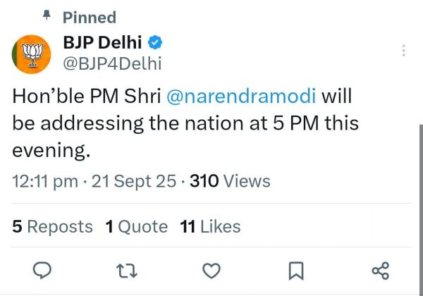 National News (21/09/2025): प्रधानमंत्री नरेंद्र मोदी (Narendra Modi) आज शाम 5 बजे राष्ट्र को संबोधित करेंगे। हालांकि संबोधन का एजेंडा आधिकारिक रूप से स्पष्ट नहीं है, लेकिन चर्चाएं हैं कि वे जीएसटी की नई दरों पर बात कर सकते हैं। गौरतलब है कि इससे पहले 12 मई को प्रधानमंत्री ने ऑपरेशन सिंदूर के बाद राष्ट्र को संबोधित किया था।