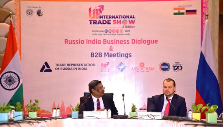 Greater Noida News (26 September 2025): उत्तर प्रदेश इंटरनेशनल ट्रेड शो (UPITS) 2025 के दूसरे दिन रूस-भारत व्यापार संवाद एवं बी2बी मीटिंग का आयोजन किया गया। इस महत्वपूर्ण बैठक की अध्यक्षता उत्तर प्रदेश शासन के अधिसचिव, अवसंरचना एवं औद्योगिक विकास विभाग, आलोक कुमार और भारत में रूस के उप-व्यापार आयुक्त डॉ. एवगेनी ज़ेंचेंको ने संयुक्त रूप से की।
