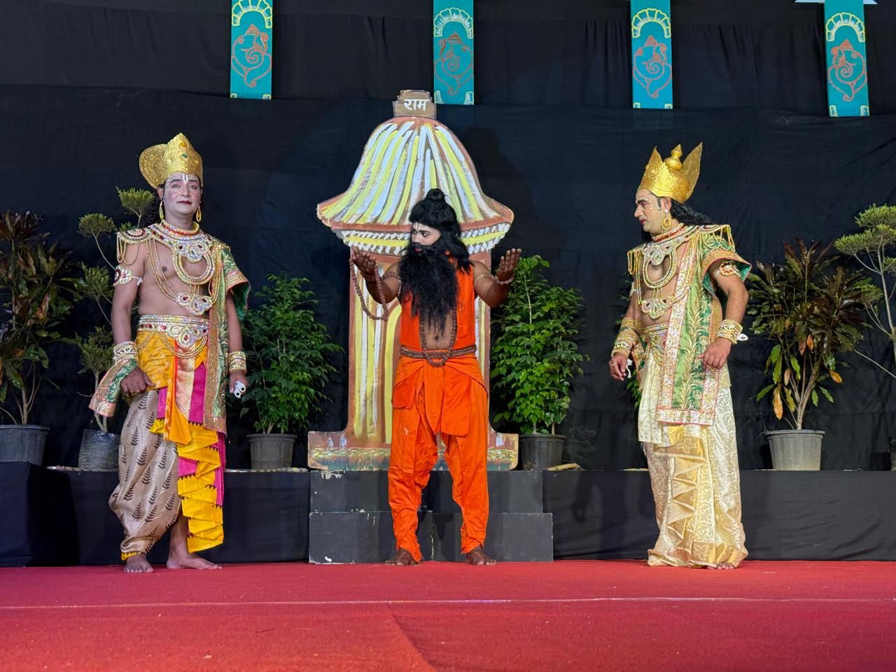 महासचिव विजेन्द्र सिंह आर्य ने बताया लीला मन्चन में श्री राम और लक्ष्मण ऋषि विश्वामित्र के आश्रम में आश्रम वासियों की पीड़ा सुनते हैं, उसी समय जनक का दूत आश्रम में आता हैं। ऋषि विश्वामित्र को जनक का निमंत्रण देता हैं, फिर ऋषि विश्वामित्र और श्री राम और लक्ष्मण जनकपुरी को प्रस्थान करते हैं जनकपुरी जाते हुए मार्ग में गौतम ऋषि की पत्नी अहिल्या का उद्धार भी करते हैं।