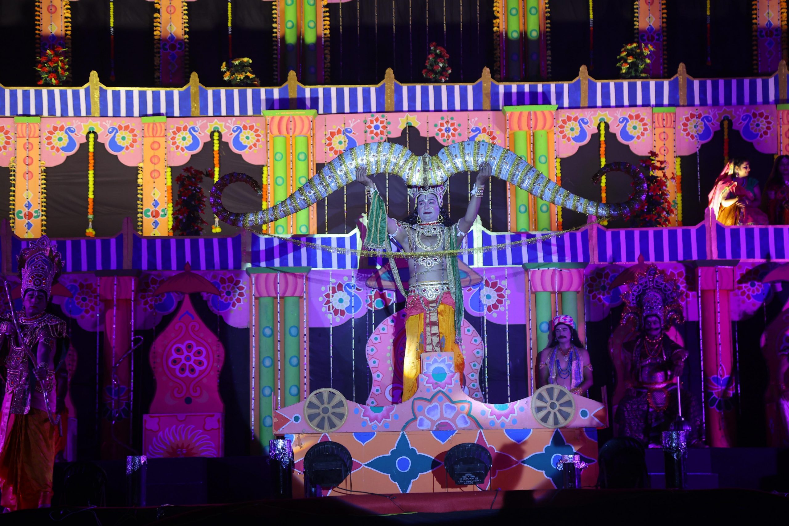 श्री रामलीला कमेटी: सीता स्वयंवर में 50 फिट का धनुष 55 फिट की ऊंचाई पर टूटा, जय-जयकार का माहौल