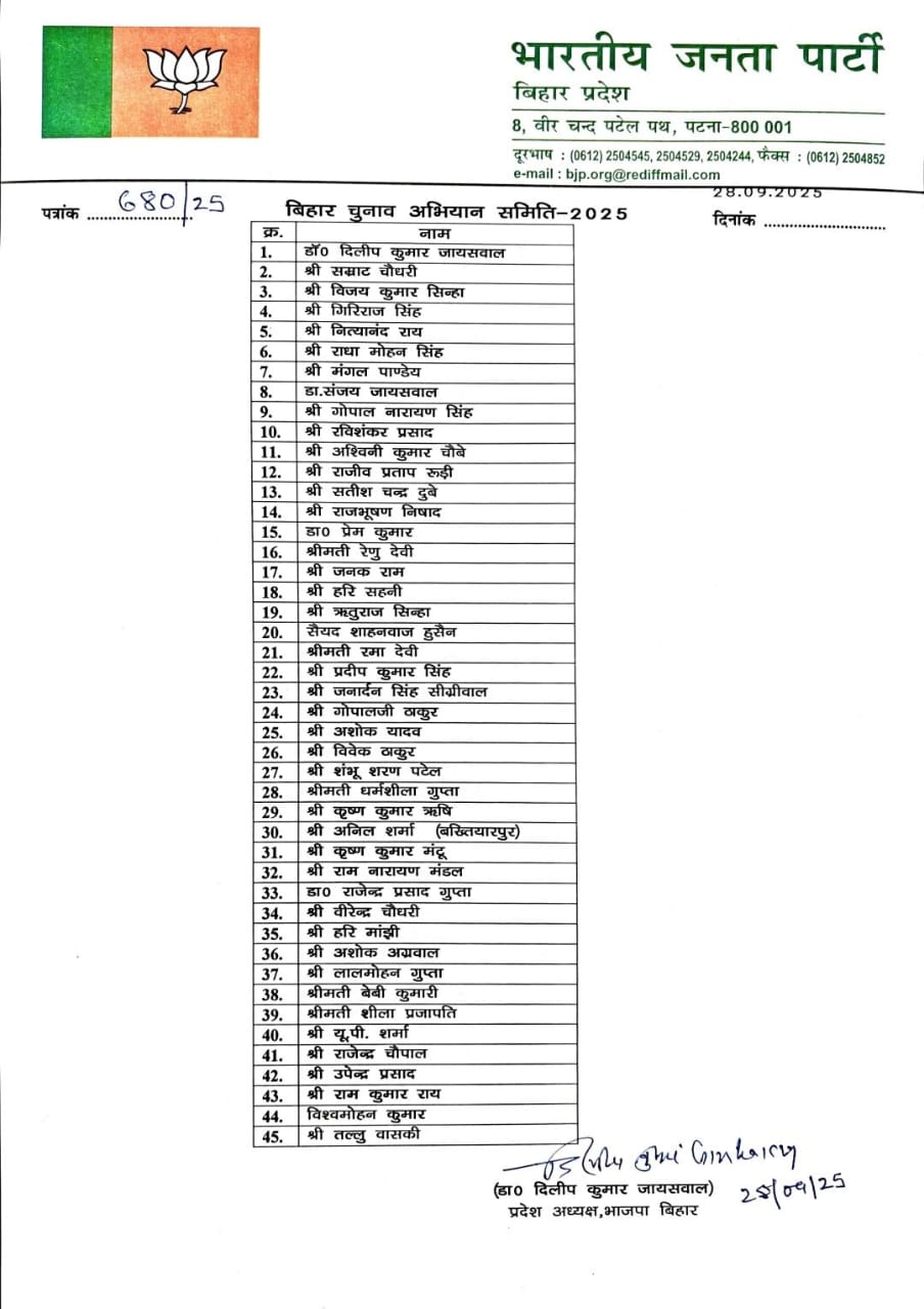 Patna (28/09/2025): जैसे-जैसे बिहार विधानसभा चुनाव करीब आ रहे हैं, भारतीय जनता पार्टी (भाजपा) ने अपनी चुनावी तैयारियों को नई धार देने की रणनीति बना ली है। पार्टी ने देशभर के 45 दिग्गज नेताओं की एक विशेष टीम गठित की है, जिन्हें ‘स्पेशल 45’ नाम दिया गया है। इन नेताओं की जिम्मेदारी होगी कि वे बिहार की हर लोकसभा सीट पर संगठन को मजबूत करें और विधानसभा स्तर तक चुनावी रणनीति को लागू करें। पार्टी सूत्रों के अनुसार, यह योजना न केवल प्रचार तक सीमित रहेगी, बल्कि बूथ प्रबंधन और कार्यकर्ताओं को ऊर्जा देने पर भी केंद्रित होगी।