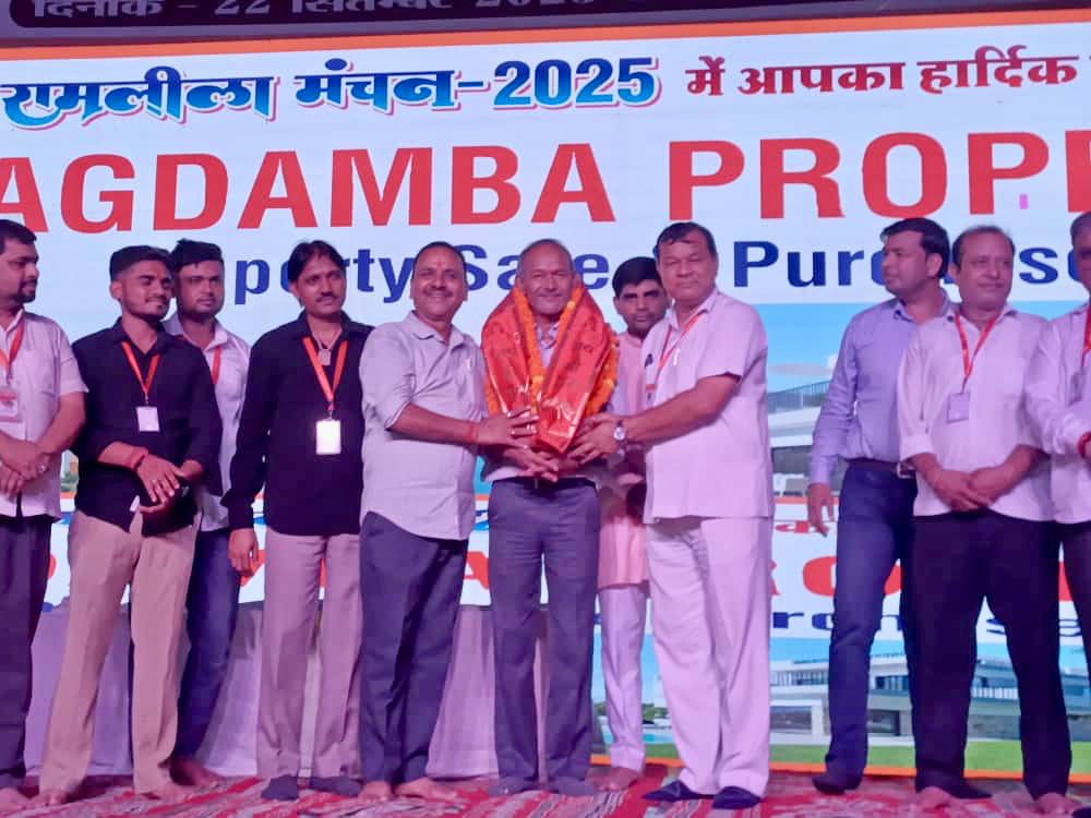 मुख्य अतिथि महेश शर्मा, समाजसेवी और बिल्डर प्रकाश चौहान, तथा साहित्यकार भगवत प्रसाद शर्मा का मंच पर पदाधिकारियों ने माला, स्मृति चिन्ह और तलवार भेंट कर भव्य स्वागत किया। साहित्यकार भगवत प्रसाद शर्मा ने रामायण के मार्मिक प्रसंग—श्री जानकी जी के हरण की लीला—पर आधारित कविता प्रस्तुत की, जिसने दर्शकों को भावविभोर कर दिया। कविता प्रस्तुत करने के बाद उन्हें माला और राम नाम का दुपट्टा पहनाकर सम्मानित किया गया।