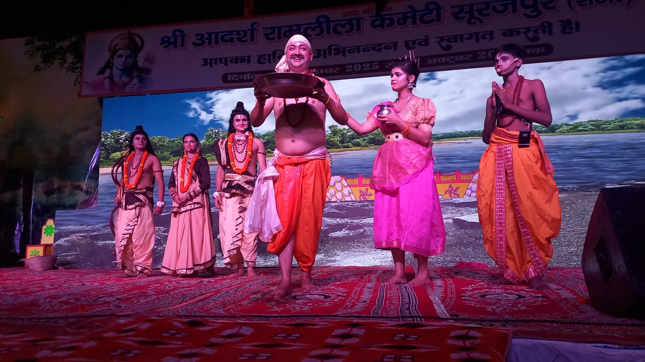 GREATER NOIDA News (28/09/2025): ग्रेटर नोएडा के क़स्बा सूरजपुर में आयोजित भव्य बाराही दशहरा मेला प्रांगण में चल रही श्री आदर्श रामलीला के छठवें दिन शनिवार की रात धार्मिक आस्था और सांस्कृतिक आनंद का अद्भुत संगम देखने को मिला। मंच पर राम–केवट संवाद और महाराज दशरथ के मरण का मार्मिक दृश्य प्रस्तुत होते ही दर्शक भाव विभोर हो उठे और पूरे प्रांगण में भक्तिमय वातावरण बन गया।