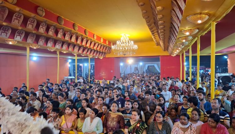 शाम के समय सांस्कृतिक मंच पर भव्य कार्यक्रम का आयोजन किया गया। देवी वंदना से गूंजते मंच पर कलाकारों ने अपने भावपूर्ण प्रस्तुतियों से उपस्थित दर्शकों को मंत्रमुग्ध कर दिया। विशेष आकर्षण रही परोमिता साहा देय की शिव तांडव और दुर्गा वंदना प्रस्तुति, जिसने श्रद्धालुओं और संगीत प्रेमियों को अपनी कला में डुबो दिया।