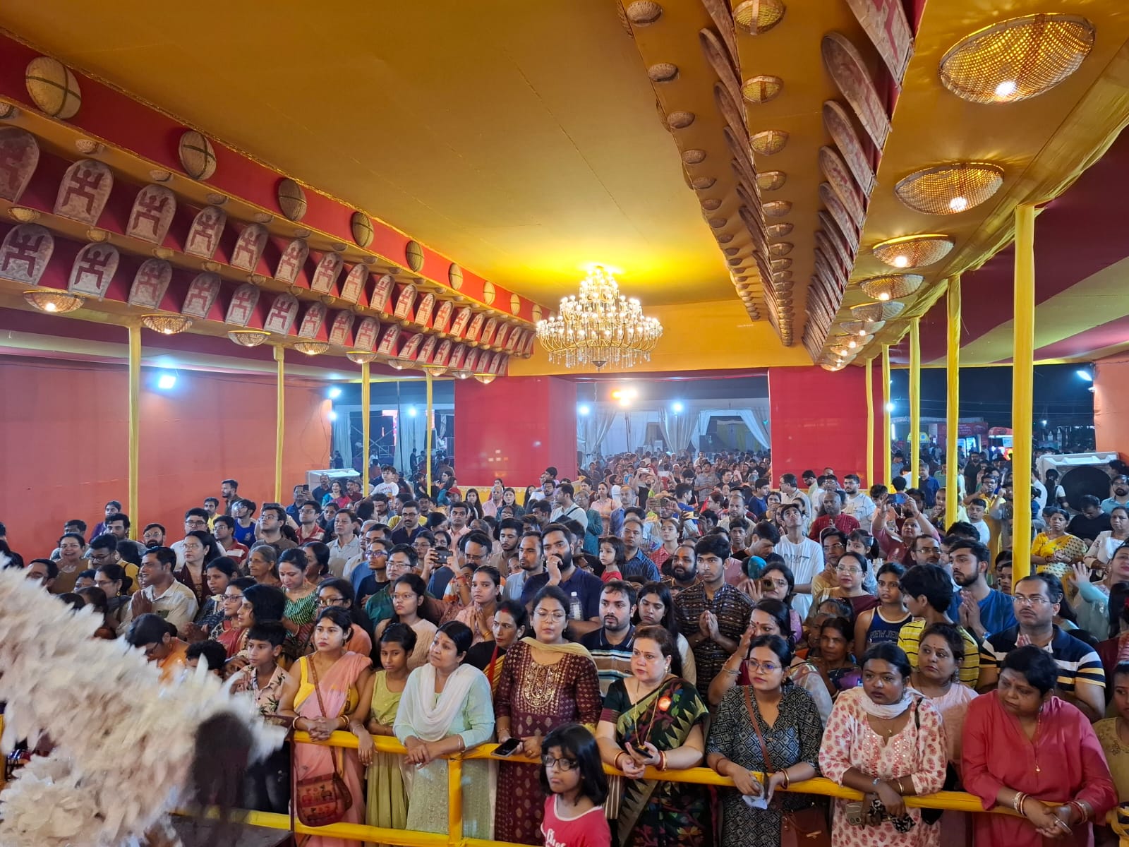 दिन का समापन लोकप्रिय बंगाली गायक बिस्वजीत पॉल के मधुर गायन के साथ हुआ। उनकी संगीत प्रस्तुति ने श्रद्धालुओं और आगंतुकों को देर तक मंत्रमुग्ध और आनंदित रखा। पूरे दिन चलने वाले आयोजन ने भक्ति और सांस्कृतिक उत्साह का एक सुंदर संगम प्रस्तुत किया। कालीबाड़ी में इस महाषष्ठी उत्सव ने यह स्पष्ट कर दिया कि शारदोत्सव केवल पूजा का ही नहीं, बल्कि समुदाय और संस्कृति के मिलन का भी पर्व है।