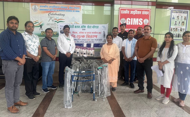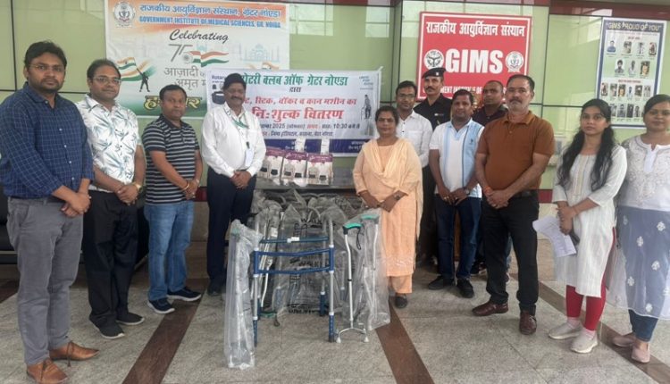 GREATER NOIDA News (30/09/2025): सेवा और सहयोग की परंपरा को आगे बढ़ाते हुए रोटरी क्लब ग्रेटर नोएडा ने आज कासना स्थित गौतम बुद्ध इंस्टीट्यूट ऑफ मेडिकल साइंसेज (GIMS) में मरीजों की सुविधा के लिए आवश्यक सामान प्रदान किया। इस पहल के अंतर्गत अस्पताल प्रशासन को कान की मशीनें, सपोर्ट बेल्ट, वॉकर और स्टिक जैसे सहायक उपकरण सौंपे गए, ताकि आर्थिक रूप से कमजोर और जरूरतमंद मरीजों को बेहतर सुविधा मिल सके।