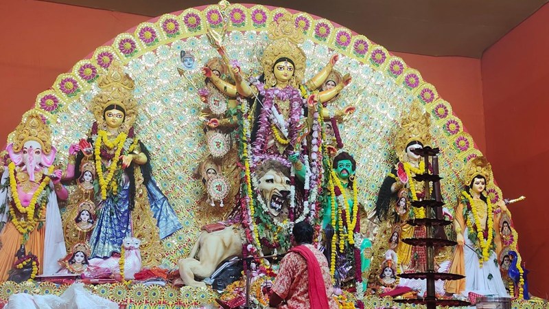 शाम होते ही संधि पूजा संपन्न हुई, जो दुर्गा पूजा का सबसे महत्वपूर्ण अनुष्ठान माना जाता है। संधि काल में देवी की आराधना और दीप प्रज्ज्वलन के साथ पूरा वातावरण दिव्यता से आलोकित हो उठा। इसके बाद सामूहिक आरती और पुष्पांजलि में श्रद्धालुओं की भीड़ उमड़ पड़ी।