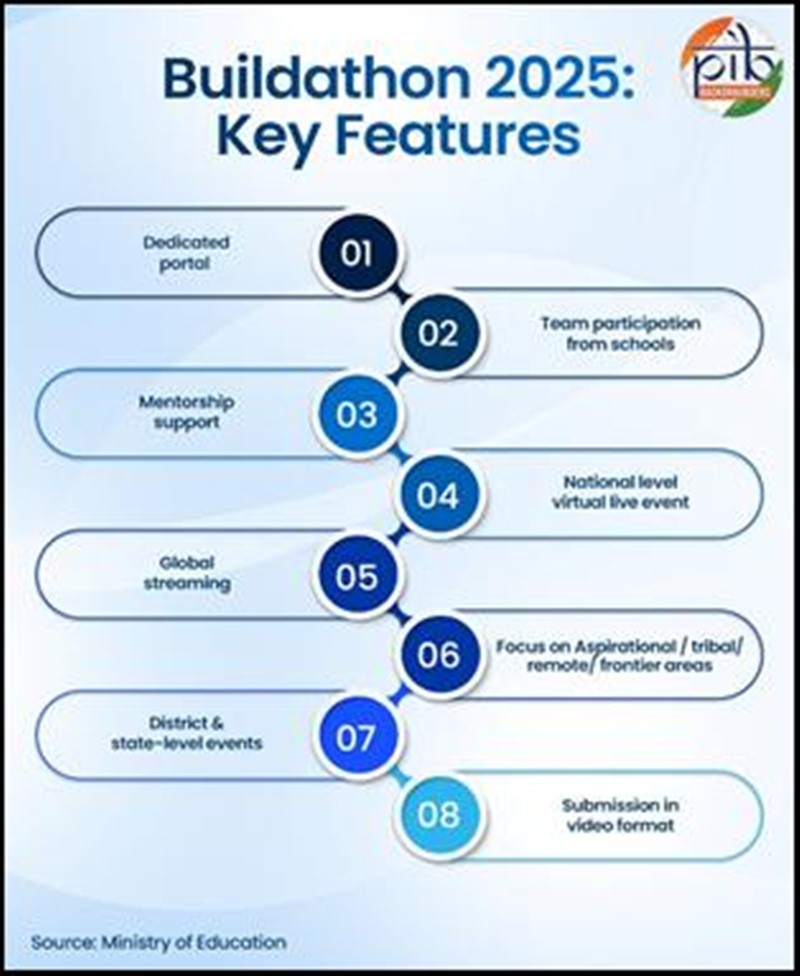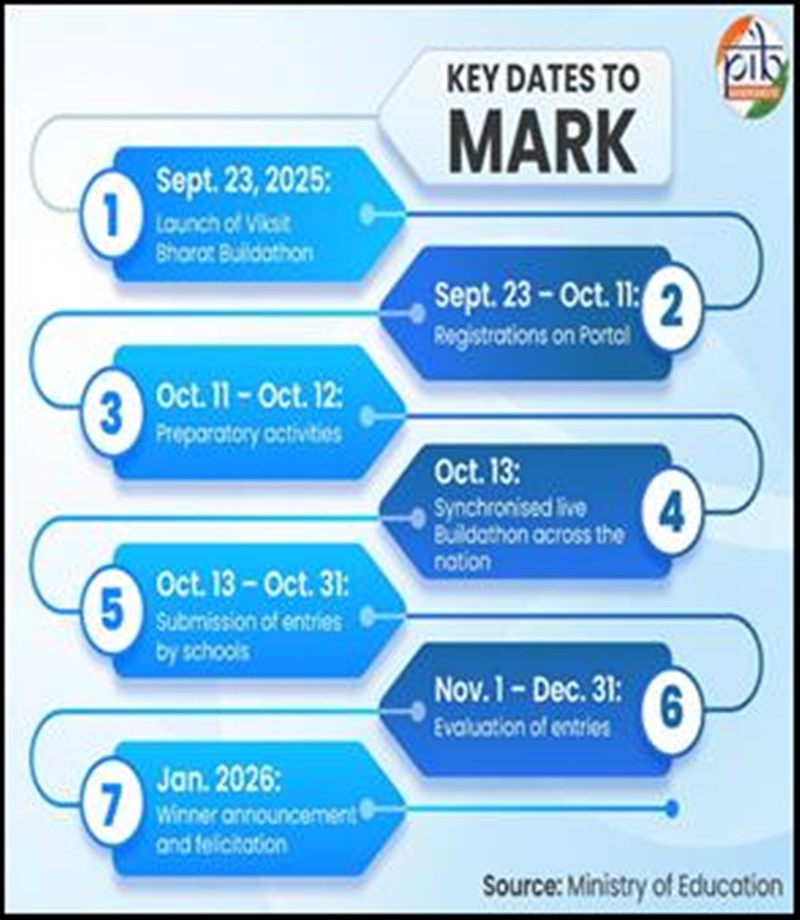 13 अक्टूबर 2025 को सभी विद्यालयों में लाइव स्ट्रीमिंग के माध्यम से एक साथ राष्ट्रव्यापी “सिंक्रोनाइज़ बिल्डथॉन” आयोजित किया जाएगा। इस दिन देशभर के छात्र एक साथ नवाचार के विभिन्न विचारों और समाधानों पर कार्य करेंगे। कार्यक्रम को राष्ट्रीय समाचार और मीडिया चैनलों पर भी प्रसारित किया जाएगा।