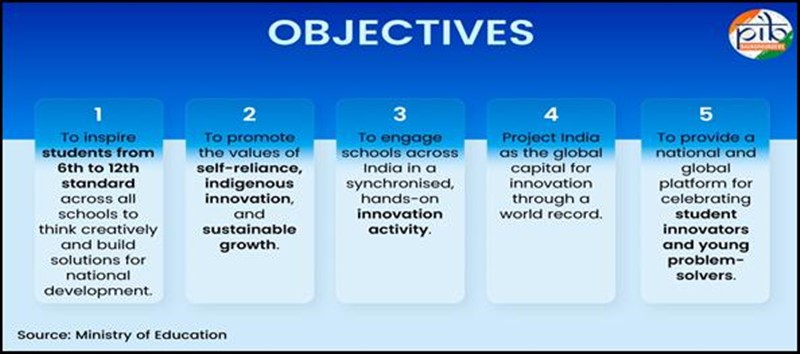 23 सितंबर को शिक्षा मंत्री श्री धर्मेंद्र प्रधान द्वारा कार्यक्रम का शुभारंभ किया गया था। 23 सितंबर से शुरू हुई पंजीकरण प्रक्रिया 11 अक्टूबर 2025 तक चलेगी। इसके बाद 11 से 12 अक्टूबर के बीच छात्रों के लिए टीम गठन, विचार-मंथन शिविर और मेंटरशिप सत्र आयोजित किए जाएंगे। विद्यालय 13 से 31 अक्टूबर तक अपनी प्रविष्टियां पोर्टल के माध्यम से जमा कर सकेंगे। विशेषज्ञों का पैनल नवंबर और दिसंबर के बीच प्रविष्टियों का मूल्यांकन करेगा, जबकि जनवरी 2026 में विजेताओं की घोषणा की जाएगी।
