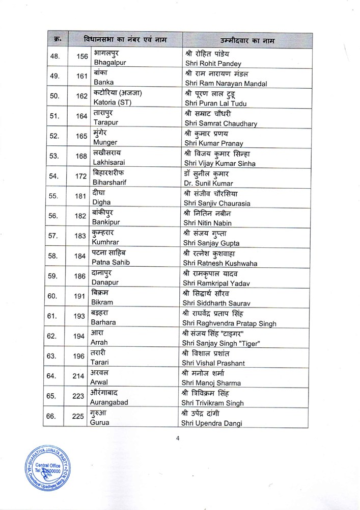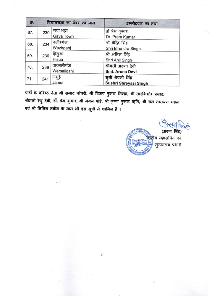 बीजेपी ने बिहार चुनाव के लिए जारी की पहली सूची, 71 प्रत्याशियों के नामों का ऐलान