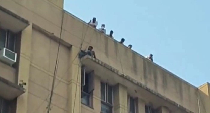 New Delhi News (15 October 2025): बाहरी दिल्ली के मंगोलपुरी स्थित संजय गांधी अस्पताल की पुरानी इमरजेंसी बिल्डिंग में बुधवार सुबह एक युवक छठी मंजिल के छज्जे पर चढ़ गया और कूदने की कोशिश करने लगा। सुबह लगभग सात बजे से युवक छज्जे पर बैठकर चिल्ला रहा था, जिससे आसपास के लोग दहशत में आ गए। मौके पर पहुंची पुलिस ने युवक से बात करके उसे नीचे आने के लिए मनाने का प्रयास किया, लेकिन उसने जिद कर नीचे उतरने से इंकार कर दिया।