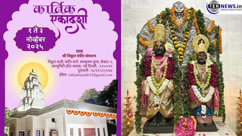 New Delhi News (02 November 2025): राजधानी दिल्ली के आर.के. पुरम स्थित श्री विट्ठल मंदिर में आज कार्तिक एकादशी के पावन अवसर पर भक्ति, श्रद्धा एवं संस्कृति का अद्भुत समागम देखने को मिला। प्रातःकाल से ही मंदिर प्रांगण “विठोबा विठ्ठल जय हरि विठ्ठल” के मधुर जयघोष से गुंजायमान हो उठा। दिल्ली एवं एनसीआर क्षेत्र से हजारों श्रद्धालु भगवान विठ्ठल-रुक्मिणी के दर्शन हेतु उपस्थित हुए, जिससे सम्पूर्ण परिसर भक्तिमय वातावरण से भर उठा।