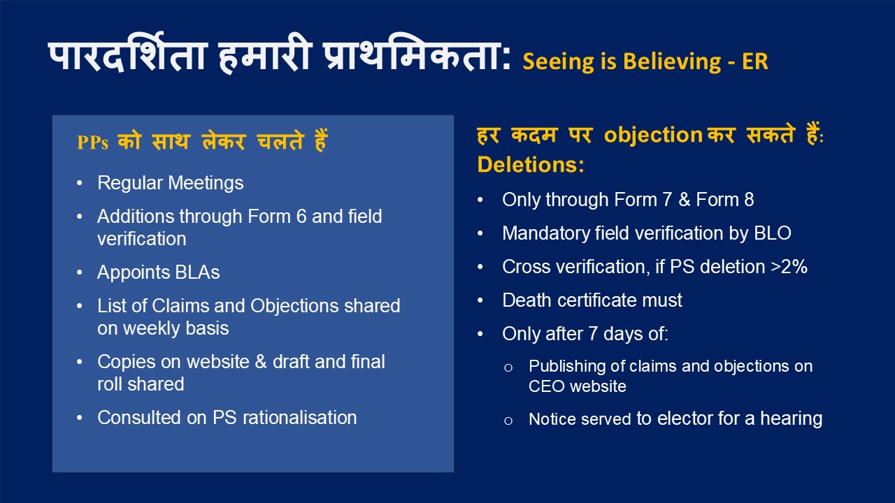 मुख्य चुनाव आयुक्त राजीव कुमार ने विस्तार पूर्वक समझाया कि इतनी बारीक और व्यापक प्रक्रिया के बाद वोटर को टर्न आउट करना इंपॉसिबल है। पूरी प्रक्रिया समझाते हुए उन्होंने बताया कि किस तरह से पोलिंग बूथ पर मौजूद अधिकारी एवं कर्मचारी काम करते हैं और एक पूरी प्रक्रिया है जो पारदर्शिता पूर्वक चुनाव कराने में सक्षम है।
