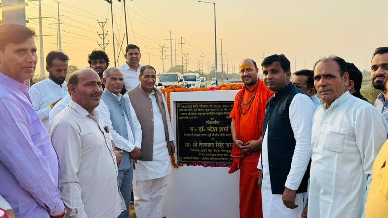 Greater Noida News (11/11/2025): दादरी विधानसभा क्षेत्र के विधायक तेजपाल नागर ने सोमवार को ग्राम खोदना खुर्द में 130 मीटर रोड से राजकुमार नागर के मकान तक बनने वाले इंटरलॉकिंग टाइल्स सड़क निर्माण (Road Construction) कार्य का उद्घाटन (Inauguration) किया। यह परियोजना विधायक निधि योजना (वित्तीय वर्ष 2024-25) के अंतर्गत संचालित की जा रही है।