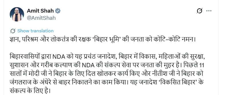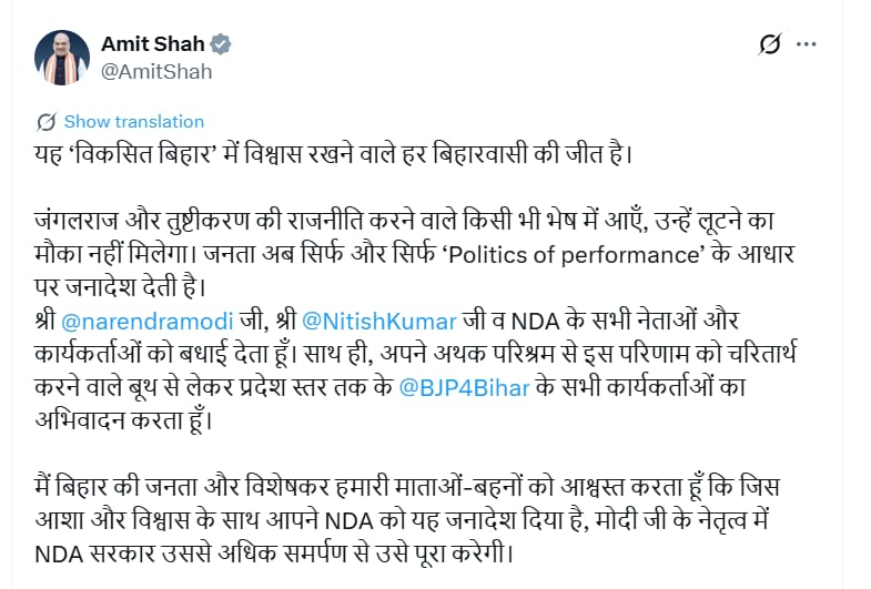 Bihar Election 2025: NDA के पक्ष में परिणाम, गृह मंत्री अमित शाह की आई पहली प्रतिक्रिया
