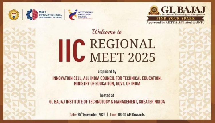 ग्रेटर नोएडा, 22 नवंबर 2025: G L Bajaj Institute of Technology & Management, ग्रेटर नोएडा गर्व के साथ घोषणा करता है कि यह 25 नवंबर 2025 को अपने कैंपस में इंस्टीट्यूशन इनोवेशन काउंसिल (IIC) रीजनल मीट 2025 की मेज़बानी करेगा, जिसका आयोजन शिक्षा मंत्रालय की इनोवेशन सेल (MIC) और AICTE द्वारा किया गया है।