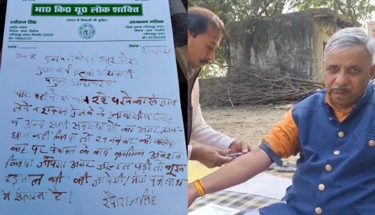 किसान नेता श्यौराज सिंह ने अपने खून से लिखा सीएम योगी आदित्यनाथ को पत्र