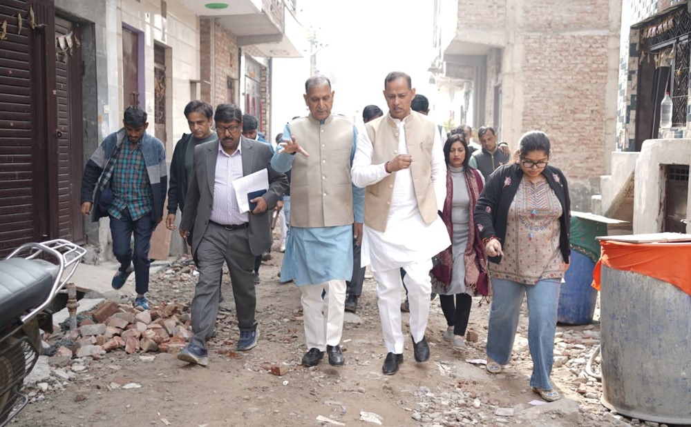 New Delhi News (29 नवंबर 2025): दिल्ली सरकार के समाज कल्याण, एससी/एसटी/ओबीसी कल्याण, सहकारिता एवं चुनाव मंत्री रविन्द्र इन्द्राज सिंह ने शुक्रवार को वार्ड-27 बेगमपुर का निरीक्षण कर क्षेत्र में चल रहे अधूरे विकास कार्यों पर नाराज़गी जताई। उप महापौर जय भगवान यादव और स्थानीय पार्षद के साथ किए गए इस दौरे में मंत्री ने सड़कों, सीवर लाइनों (Sewer Network), नालों (Drains) और समुदाय भवन (Community Centre) से जुड़े लंबित कार्यों को जल्द और उच्च गुणवत्ता के साथ पूरा करने के कड़े निर्देश दिए।