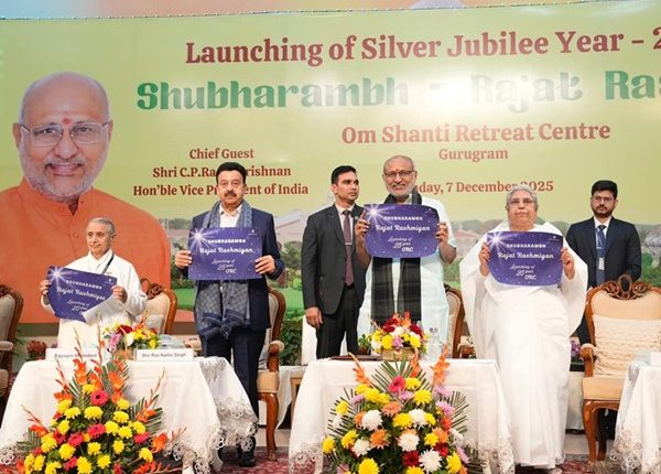 Gurugram News (07 December 2025): भारत के उपराष्ट्रपति सी.पी. राधाकृष्णन ने गुरुग्राम में ब्रह्म कुमारी के ओम शांति रिट्रीट सेंटर (ओएसआरसी) के रजत जयंती वर्ष समारोह का शुभारंभ किया।