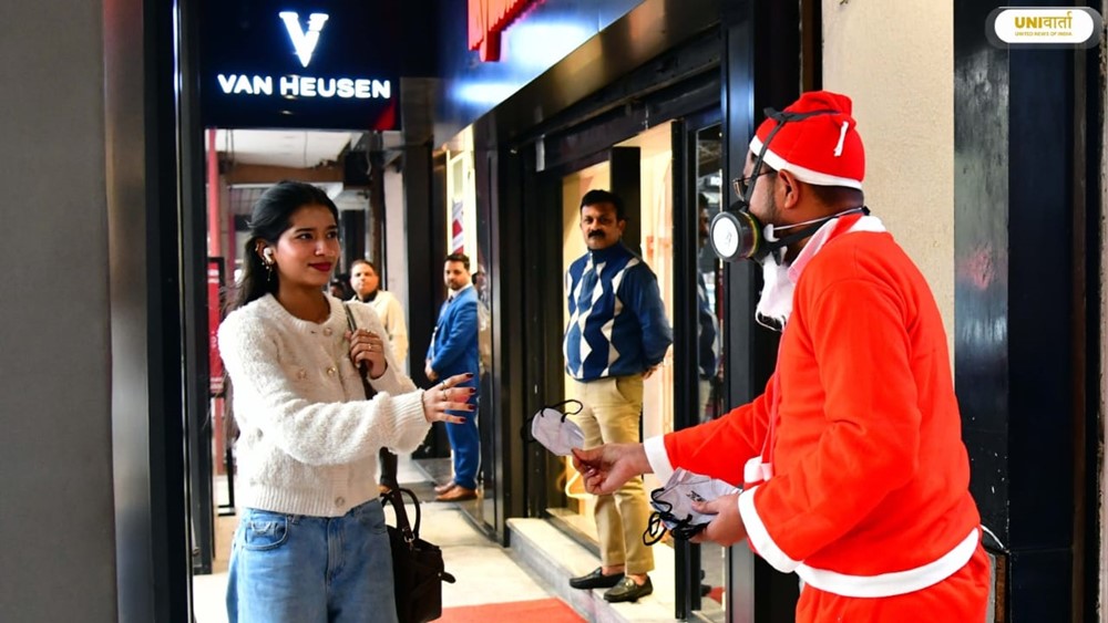New Delhi News (22 December 2025): दिल्ली की जहरीली हवा के खिलाफ एक अनोखा और प्रतीकात्मक विरोध प्रदर्शन देखने को मिला, जब गैस मास्क पहने ‘सांता क्लॉज’ राजधानी की सड़कों पर उतरे। दक्षिण एक्सटेंशन और कनॉट प्लेस जैसे व्यस्त बाजारों में अचानक कई सांता क्लॉज को गैस मास्क लगाए घूमते देख लोग चौंक गए। यह न तो किसी क्रिसमस सेलिब्रेशन का हिस्सा था और न ही फोटो सेशन, बल्कि दिल्ली में खतरनाक स्तर पर पहुंच चुके वायु प्रदूषण को लेकर एक सशक्त संदेश था। इस पहल ने बाजारों में खरीदारी कर रहे लोगों का ध्यान तुरंत अपनी ओर खींचा। लोगों ने रुककर इस अनोखे प्रदर्शन को समझने की कोशिश की।