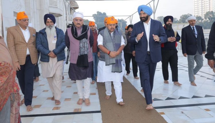 New Delhi News (27 December 2025): वीर बाल दिवस के पावन अवसर पर दिल्ली के प्रसिद्ध गुरुद्वारा बंगला साहिब में श्रद्धा और सम्मान के साथ अरदास की गई। इस मौके पर दिल्ली सरकार के पर्यावरण मंत्री मनजिंदर सिंह सिरसा ने गुरु गोबिंद सिंह जी के वीर साहिबज़ादों की अमर शहादत को नमन किया। उनके साथ भाजपा के राष्ट्रीय कार्यकारी अध्यक्ष नितिन नवीन और दिल्ली प्रदेश अध्यक्ष वीरेंद्र सचदेवा भी उपस्थित रहे। सभी नेताओं ने गुरुद्वारा पहुंचकर शीश नवाया और गुरु साहिब के चरणों में अरदास अर्पित की।
