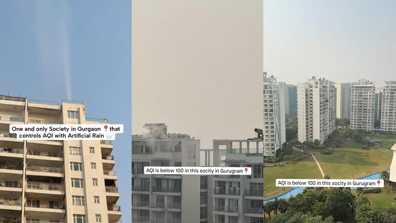 दरअसल, गुरुग्राम की एक हाउसिंग सोसाइटी में हवा की गुणवत्ता सुधारने के लिए कृत्रिम बारिश की जा रही है। इस पहल का वीडियो इंस्टाग्राम पर राहुल यादव नाम के यूजर ने साझा किया है। वीडियो में देखा जा सकता है कि सोसाइटी के अपार्टमेंट की छतों से पानी को फव्वारों की तरह हवा में स्प्रे किया जा रहा है, जो बारिश का रूप ले लेता है।