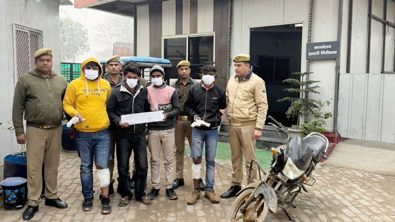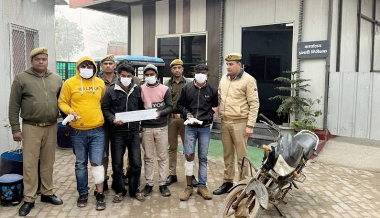 Greater Noida News (30/12/2025): ग्रेटर नोएडा के थाना कासना पुलिस ने एक कार लूट की सनसनीखेज वारदात का खुलासा किया है। पुलिस ने मुठभेड़ (Encounter) में दो शातिर लुटेरों को गिरफ्तार किया, बाद में पूछताछ में मिले इनपुट के आधार पर उनके दो अन्य सहयोगियों को भी गिरफ्तार (Arrested) कर लिया है। इस कार्रवाई में पुलिस ने लूटी गई स्विफ्ट कार, दो अवैध तमंचे, जिंदा कारतूस, लूट से संबंधित सामान और घटना में प्रयुक्त मोटरसाइकिल बरामद की है।