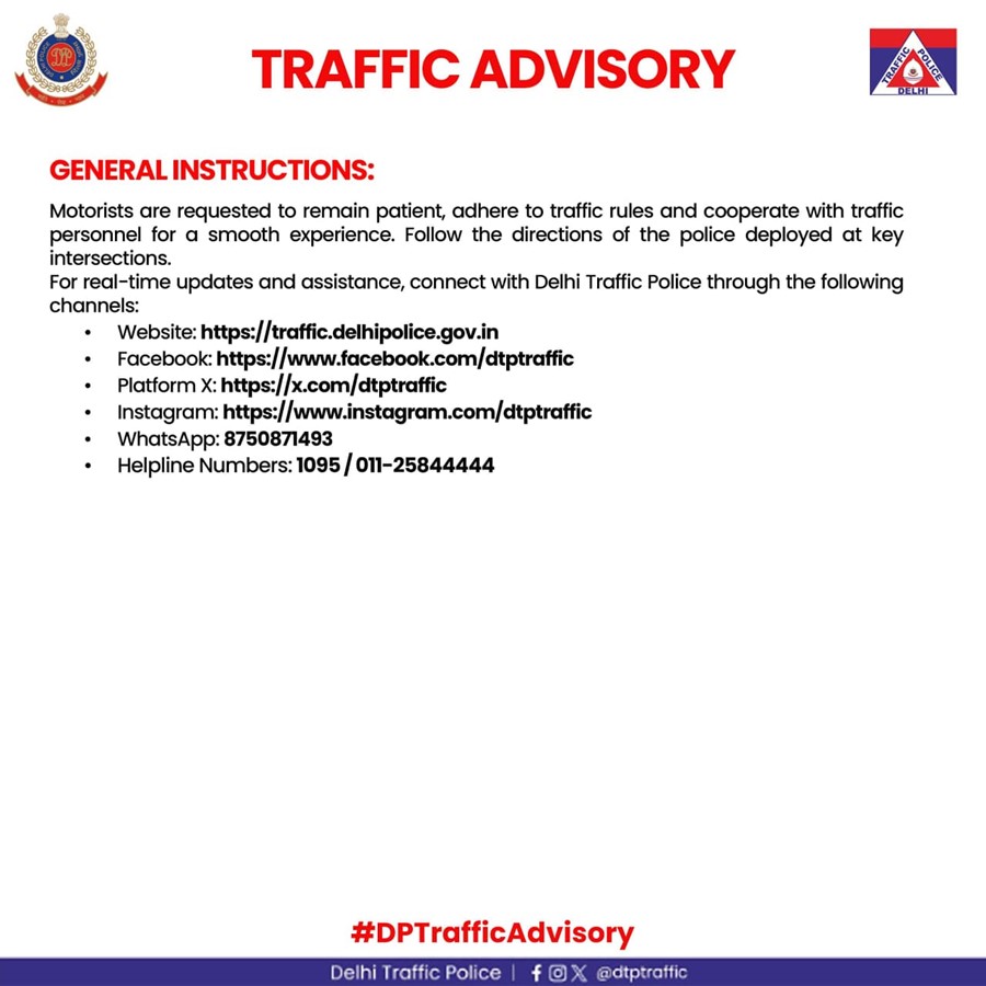 दिल्ली ट्रैफिक पुलिस ने श्रद्धालुओं और आम यात्रियों से अपील की है कि वे अपनी यात्रा की पहले से योजना बनाएं और जारी दिशा-निर्देशों का पालन करें। साथ ही, मंदिर परिसर और NH-44 के आसपास सड़क किनारे वाहन खड़े करने से बचें। यात्रियों को ताजा अपडेट के लिए दिल्ली ट्रैफिक पुलिस के आधिकारिक चैनलों पर नजर बनाए रखने की सलाह दी गई है।।