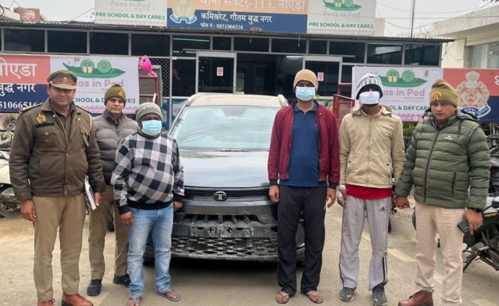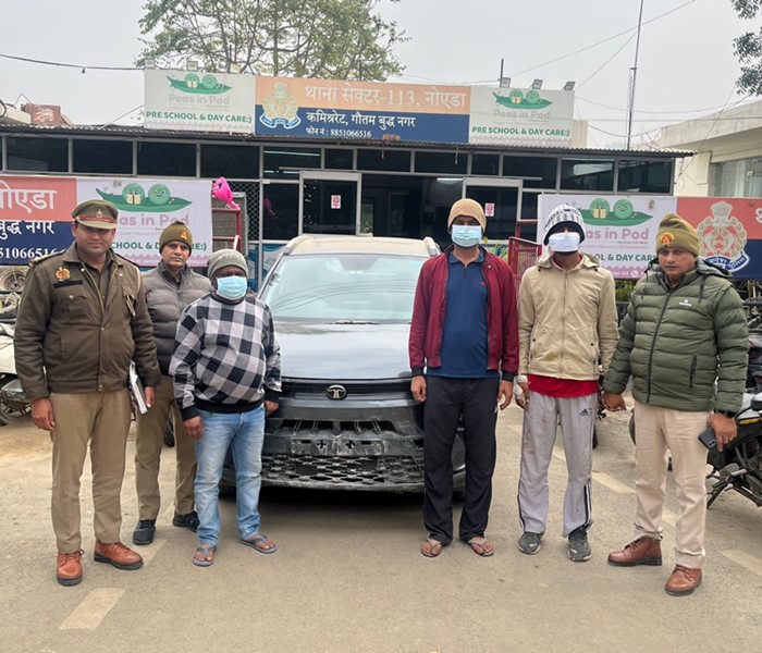 NOIDA News (04/01/2026): थाना सेक्टर-113 नोएडा पुलिस ने वाहन चोरी के एक संगठित गिरोह का खुलासा करते हुए तीन आरोपियों को गिरफ्तार किया है। पुलिस ने आरोपियों के कब्जे से चोरी की गई टाटा नेक्सॉन कार (ग्रे रंग, बिना नंबर प्लेट) और उसकी चाबी बरामद की है। यह कार्रवाई लोकल इंटेलिजेंस और इलेक्ट्रॉनिक सर्विलांस की मदद से की गई।