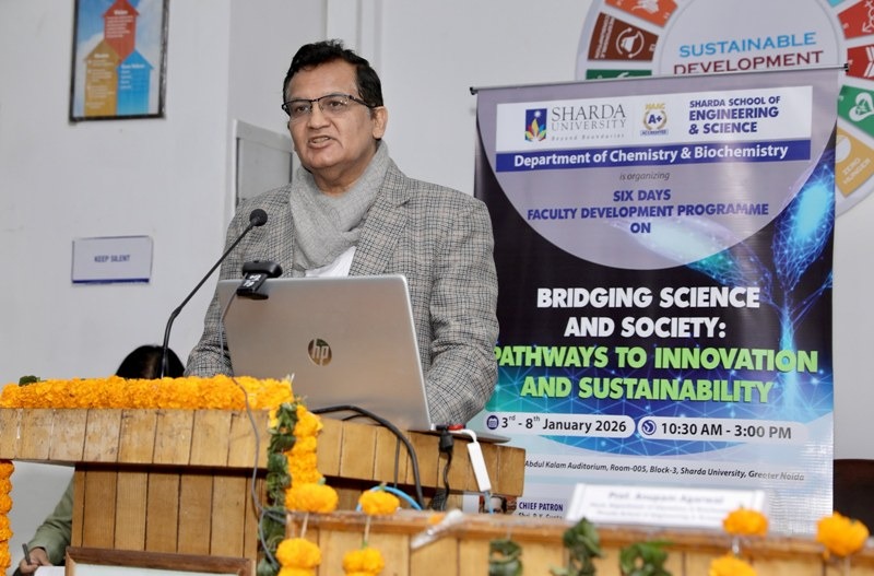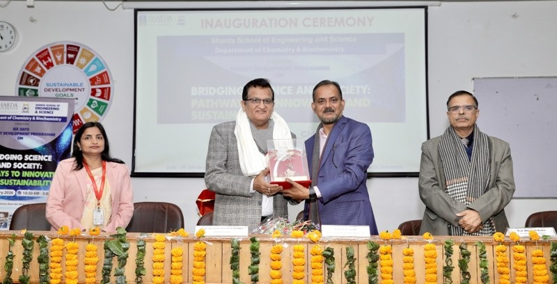 GREATER NOIDA News (05/01/2026): शारदा विश्वविद्यालय (Sharda University) के रसायन विज्ञान एवं जैव रसायन विज्ञान विभाग द्वारा आयोजित 6-दिवसीय फैकल्टी डेवलपमेंट प्रोग्राम विज्ञान और समाज को जोड़न विश्वविद्यालय परिसर में विधिवत शुभारंभ किया।