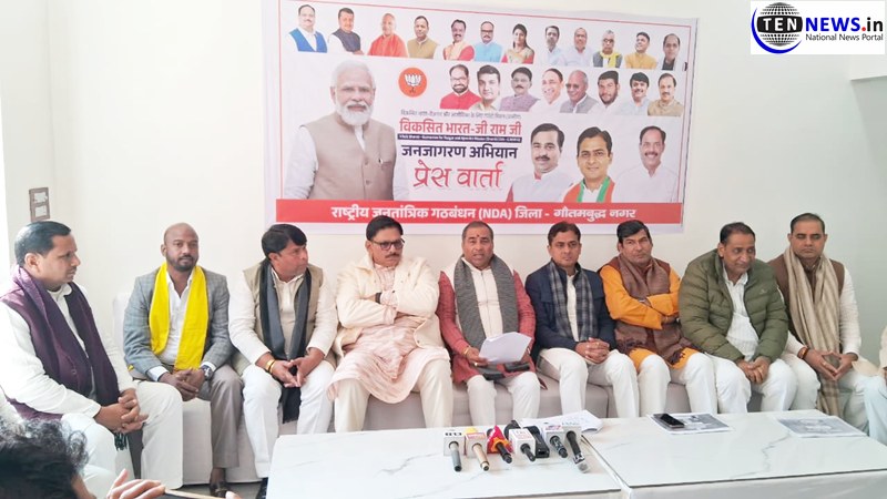 Greater Noida News (11/01/2026): आज 11 जनवरी को भारतीय जनता पार्टी, जनपद गौतमबुद्ध नगर द्वारा “विकसित भारत – रोजगार आजीविका गारंटी ग्रामीण योजना (VB-G-RAM-G)” विषय पर एक पत्रकार वार्ता का आयोजन किया। जिसमेंमुख्य अतिथि के रूप में कुंवर बृजेश सिंह राज्य मंत्री, उत्तर प्रदेश सरकार एवं प्रभारी मंत्री, जनपद गौतमबुद्ध नगर उपस्थित रहे।