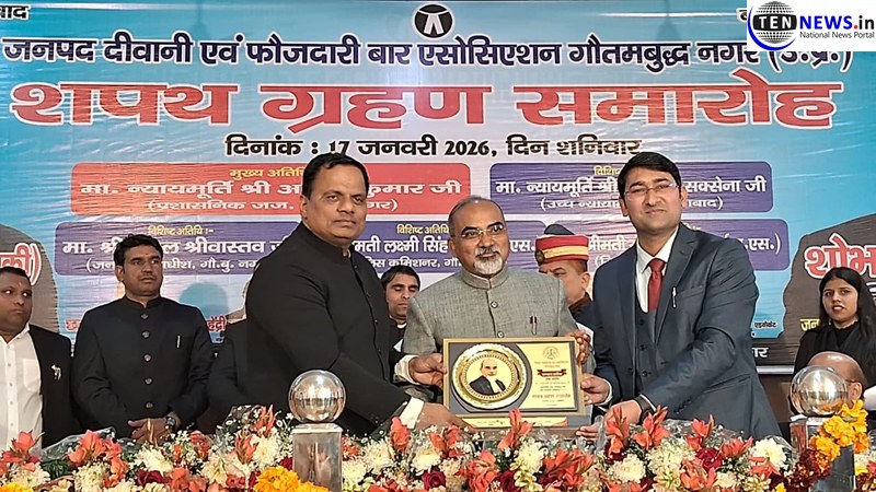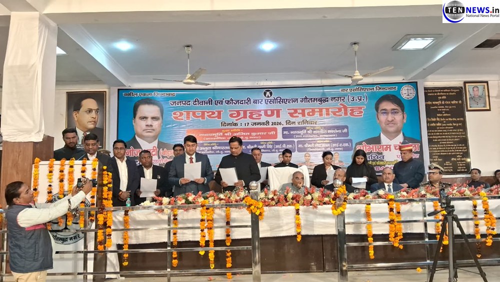 Greater Noida News (17/01/ 2026): जनपद दीवानी एवं फौजदारी बार एसोसिएशन, गौतमबुद्ध नगर की नवनिर्वाचित कार्यकारिणी का शपथ ग्रहण समारोह शनिवार, 17 जनवरी को दोपहर 12:30 बजे बार सभागार में हर्षोल्लास एवं गरिमामय वातावरण में संपन्न हुआ। समारोह में बड़ी संख्या में अधिवक्ताओं एवं न्यायिक अधिकारियों की उपस्थिति ने कार्यक्रम को विशेष बना दिया।