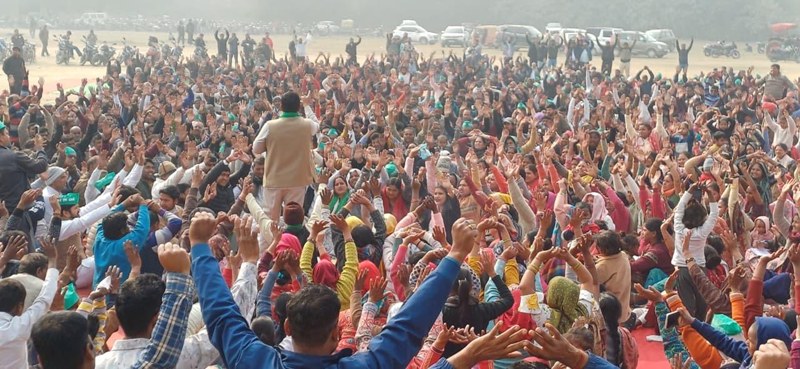 Greater Noida News (18 जनवरी, 2026): भारतीय किसान परिषद के आह्वान पर डूब क्षेत्र के सौरखा खेल मैदान में आज कमेरा वर्ग को बिजली की मूलभूत सुविधा दिलाने के मुद्दे पर एक विशाल महापंचायत का आयोजन किया गया। इस महापंचायत में लगभग 10,000 कमेरा वर्ग के लोग और किसान बड़ी संख्या में शामिल हुए, जहां शहर की व्यवस्था को संभालने वाला श्रमिक वर्ग और अन्नदाता किसान एक-दूसरे की समस्याओं के समर्थन में एकजुट नजर आए। महापंचायत के दौरान सभी उपस्थित लोगों ने अपने हक और अधिकारों की लड़ाई हर कसौटी पर लड़ने का संकल्प लिया।