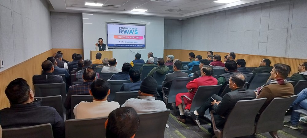 Greater Noida News (18/01/ 2026): रविवार को फेडरेशन ऑफ आरडब्ल्यूएज़, ग्रेटर नोएडा (Federation of RWAs, Greater Noida) की एक महत्वपूर्ण बैठक शारदा केयर हॉस्पिटल (Sharda Care Hospital), नॉलेज पार्क में संपन्न हुई। बैठक की अध्यक्षता देवेंद्र टाइगर एवं ऋषिपाल ने की, जबकि बैठक का संचालन दीपक कुमार भाटी ने किया। बैठक में शहर की लगभग 40 आरडब्ल्यूए के प्रतिनिधियों ने भाग लिया।