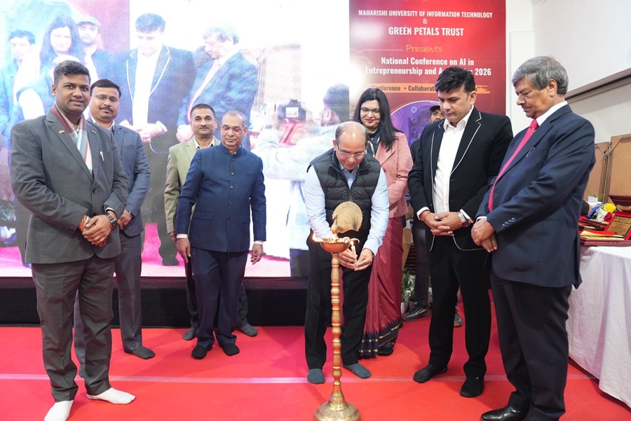 NOIDA News (18/01/2026): महर्षि यूनिवर्सिटी ऑफ इन्फॉर्मेशन टेक्नोलॉजी, नोएडा में शनिवार को उद्यमिता और शिक्षा के क्षेत्र में आर्टिफिशियल इंटेलिजेंस (Artificial Intelligence) की बढ़ती भूमिका पर केंद्रित एक दिवसीय राष्ट्रीय सम्मेलन का आयोजन किया गया। यह सम्मेलन महर्षि यूनिवर्सिटी ऑफ इन्फॉर्मेशन टेक्नोलॉजी, नोएडा और ग्रीन पेटल्स ट्रस्ट, मेरठ के संयुक्त तत्वावधान में संपन्न हुआ, जिसमें देश के विभिन्न हिस्सों से शिक्षाविदों, शोधकर्ताओं, नीति विशेषज्ञों, उद्यमियों और बड़ी संख्या में विद्यार्थियों ने भाग लिया।