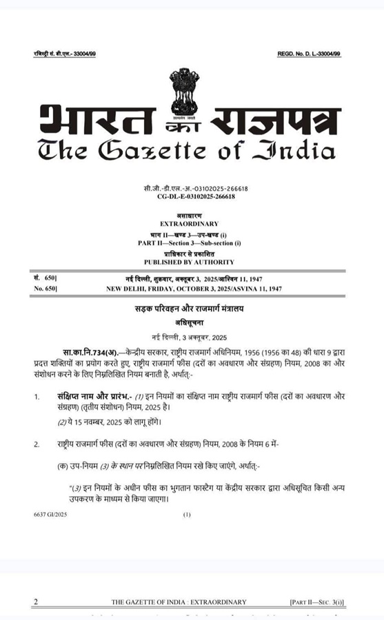New Delhi News (19 January 2026): नेशनल क्राइम इन्वेस्टिगेशन ब्यूरो के हवाले से सामने आई जानकारी में बताया गया है कि टोल प्लाजा पर फास्टैग से भुगतान न होने की स्थिति में वाहन चालकों के अधिकार और देय शुल्क को लेकर नियम पूरी तरह स्पष्ट हैं। भारत सरकार के सड़क परिवहन और राजमार्ग मंत्रालय द्वारा प्रकाशित भारत के राजपत्र (The Gazette of India) के अनुसार, यह नियम आधिकारिक रूप से अधिसूचित हैं और सभी टोल प्लाजा पर लागू होते हैं। इसके बावजूद, जमीनी स्तर पर इन नियमों की अनदेखी किए जाने के मामले लगातार सामने आ रहे हैं।