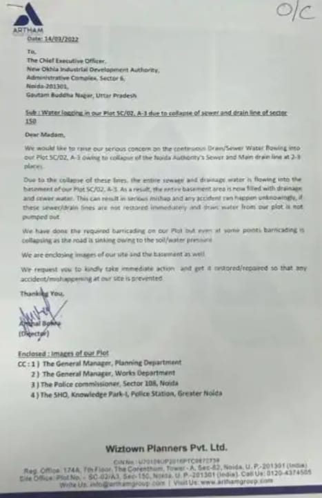 बताया जा रहा है कि यह पत्र 14 मार्च 2022 को नोएडा प्राधिकरण के तत्कालीन सीईओ को संबोधित किया गया था। पत्र में बिल्डर ने स्पष्ट रूप से शिकायत दर्ज कराई थी कि प्लॉट संख्या AC/02, A-3 के आसपास कई स्थानों पर नोएडा प्राधिकरण की सीवर लाइन और मुख्य ड्रेन क्षतिग्रस्त हैं। इसके चलते निर्माणाधीन प्लॉट के बेसमेंट में लगातार पानी और सीवर की गाद भर रही है।