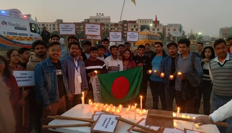 Sharda University ने बांग्लादेश में हिंदू अल्पसंख्यक और इस्कॉन अनुयायी पर हो रहे हमले के विरोध में निकाला कैंडल मार्च
