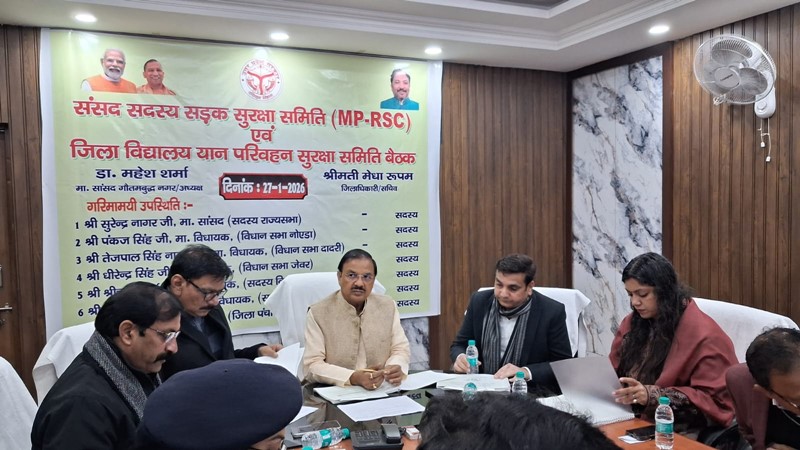 NOIDA News (28/01/2026): गौतमबुद्ध नगर लोकसभा क्षेत्र के सांसद डॉ. महेश शर्मा की अध्यक्षता में मंगलवार को सेक्टर-27, नोएडा स्थित कैंप कार्यालय के सभागार में संसद सदस्य सड़क सुरक्षा समिति (MP-RSC) एवं जिला विद्यालय यान परिवहन सुरक्षा समिति की एक संयुक्त एवं महत्वपूर्ण समीक्षा बैठक आयोजित की गई। बैठक का उद्देश्य जनपद में सड़क दुर्घटनाओं की रोकथाम, ब्लैक स्पॉट सुधार कार्यों की प्रगति तथा विद्यालय वाहनों की सुरक्षा व्यवस्था की समीक्षा करना रहा।